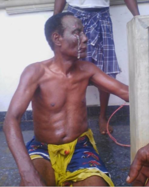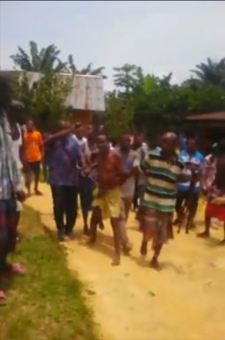 Angry youths and villagers stormed the man’s house as they beat him black and blue after his alleged confession.