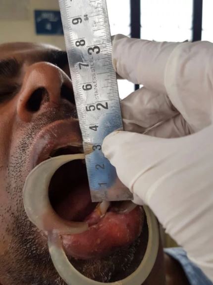 Surgeon Dr. J B Garde diagnosed him with ankyloses of the temporormandibular joint and released the fused bones, meaning he can now open his mouth 4.5cm wide.