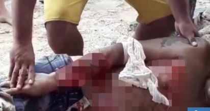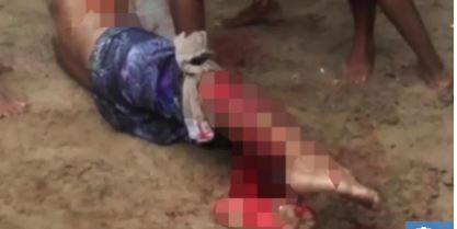 Shocking footage showed the blood-soaked victim, with chunks missing from his arms and legs, lying in agony on the beach while rescuers tied tourniquets around his limbs.